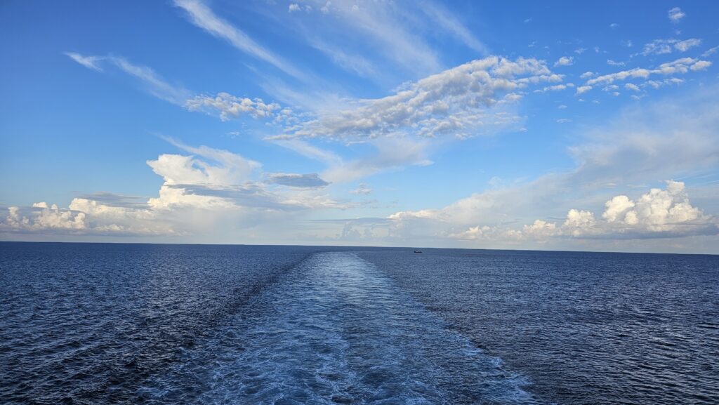 Die Fähre ist schlicht. Kein Komfort, keine Atmosphäre. Automaten ohne Inhalt. Ein Schiff, das anderswo längst ausgemustert wäre – und hier noch seinen Dienst tut. Wir liegen bereits in unseren Betten, als die Motoren anspringen und die Küste langsam im Dunkel verschwindet.
