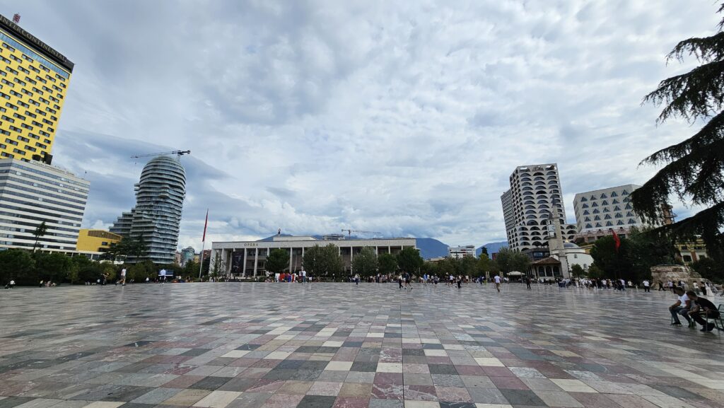 Der Platz ist weitläufig, fast leer, und doch voller Geschichte. Hier standen einst Statuen von Stalin und später von Enver Hoxha – heute ist es ein Ort des Wandels, ein Treffpunkt, ein Symbol für das neue Albanien.