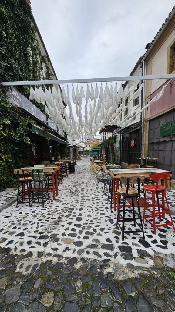 Wir spazieren weiter ins Viertel Blloku. Während der kommunistischen Ära war dieser Stadtteil streng abgeschirmt – nur Parteifunktionäre durften hier leben. Heute ist Blloku das pulsierende Herz der Stadt: Cafés mit bunten Stühlen, Bars mit lauter Musik, Boutiquen mit internationalen Marken. Junge Menschen sitzen in der Sonne, trinken Espresso, scrollen auf ihren Handys.