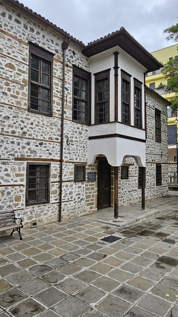 Wir spazieren durch die Altstadt, vorbei an gepflasterten Gassen, steilen Treppen und kunstvoll verzierten Holzbalkonen. Viele Häuser sind heute Museen, Gästehäuser oder Cafés. Die Architektur ist nicht nur schön – sie erzählt von einer Zeit, in der Gjirokastra ein kulturelles Zentrum war.